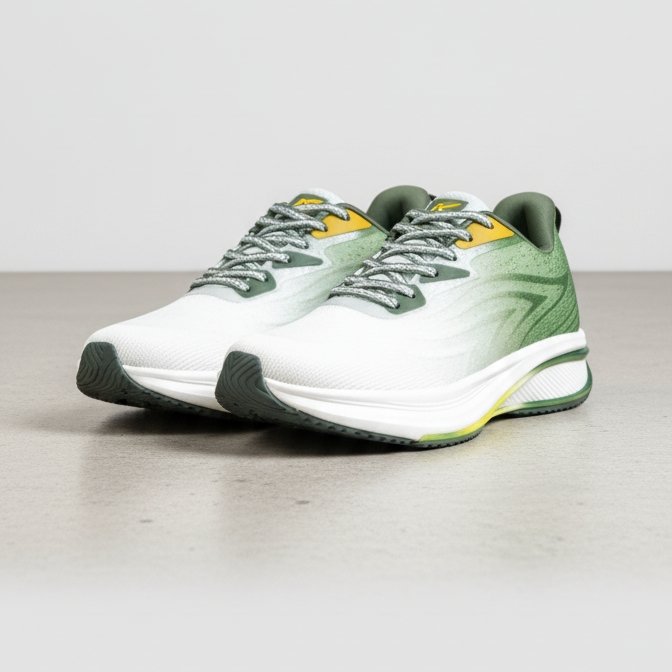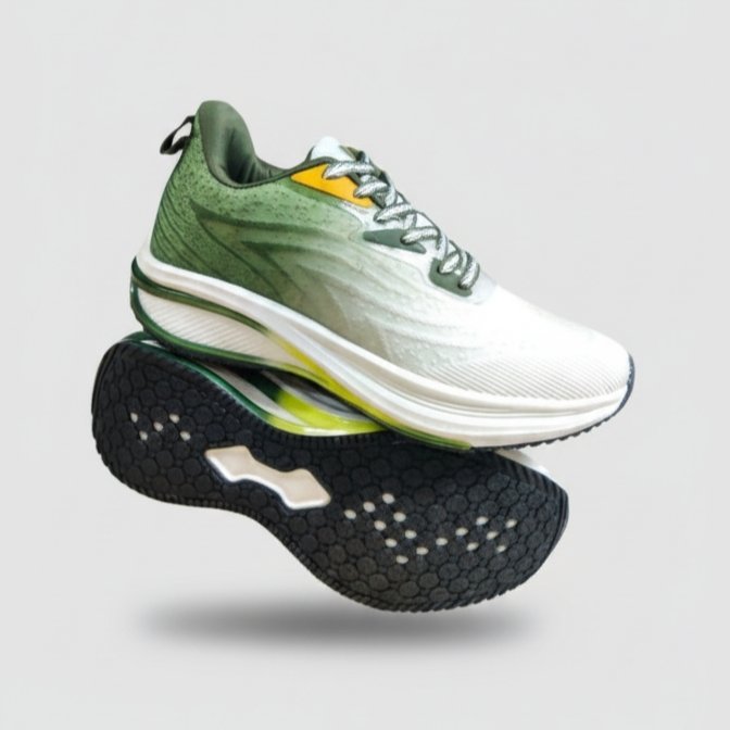 Yeh FLYO ke stylish green-white running shoes comfort, style aur performance ka perfect combination hain. Lightweight design long walks, running aur daily wear ke liye ideal hai. Breathable upper ventilation ensure karta hai jisse feet fresh rehte hain. Soft cushioned sole smooth aur shock-absorbing experience provide karta hai. Green gradient design aur yellow detailing inhe modern sporty look deti hai.