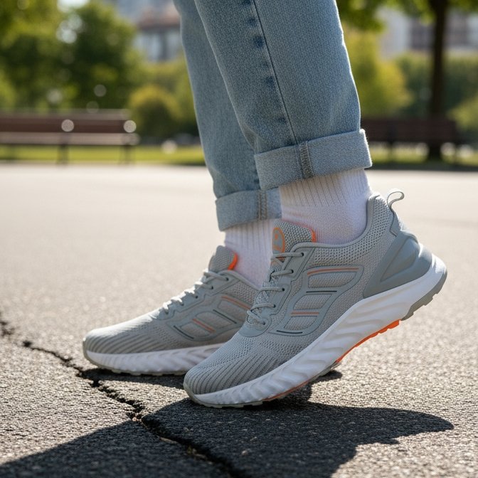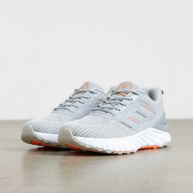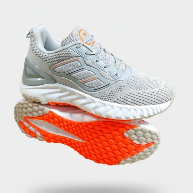 Yeh FLYO ke light grey running shoes modern, stylish aur highly comfortable design mein aate hain. Breathable knit upper airflow ensure karta hai jisse feet cool aur fresh rehte hain. Soft cushioned sole smooth walking aur running experience provide karta hai. Lightweight build long hours ke daily wear ke liye perfect hai. Orange detailing iska overall look trendy aur attractive banaati hai.