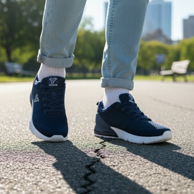 Yeh FLYO ke navy sports shoes stylish design ke saath extra comfort aur cushioning provide karte hain. Air shocker heel technology impact ko absorb karti hai jisse walking, running aur daily use smooth aur comfortable ho jata hai. Breathable mesh upper ventilation ensure karta hai aur soft cushioned sole long hours tak comfort deta hai. Navy color ke saath white detailing iska look clean, modern aur sporty banati hai.