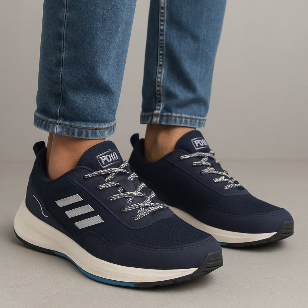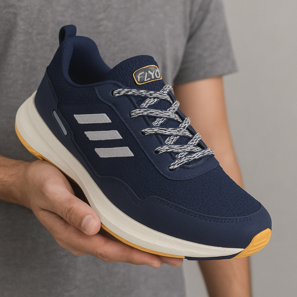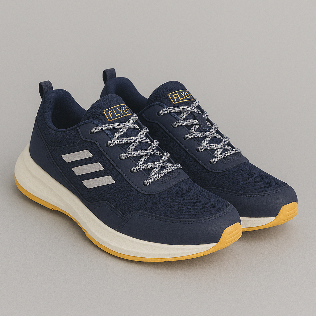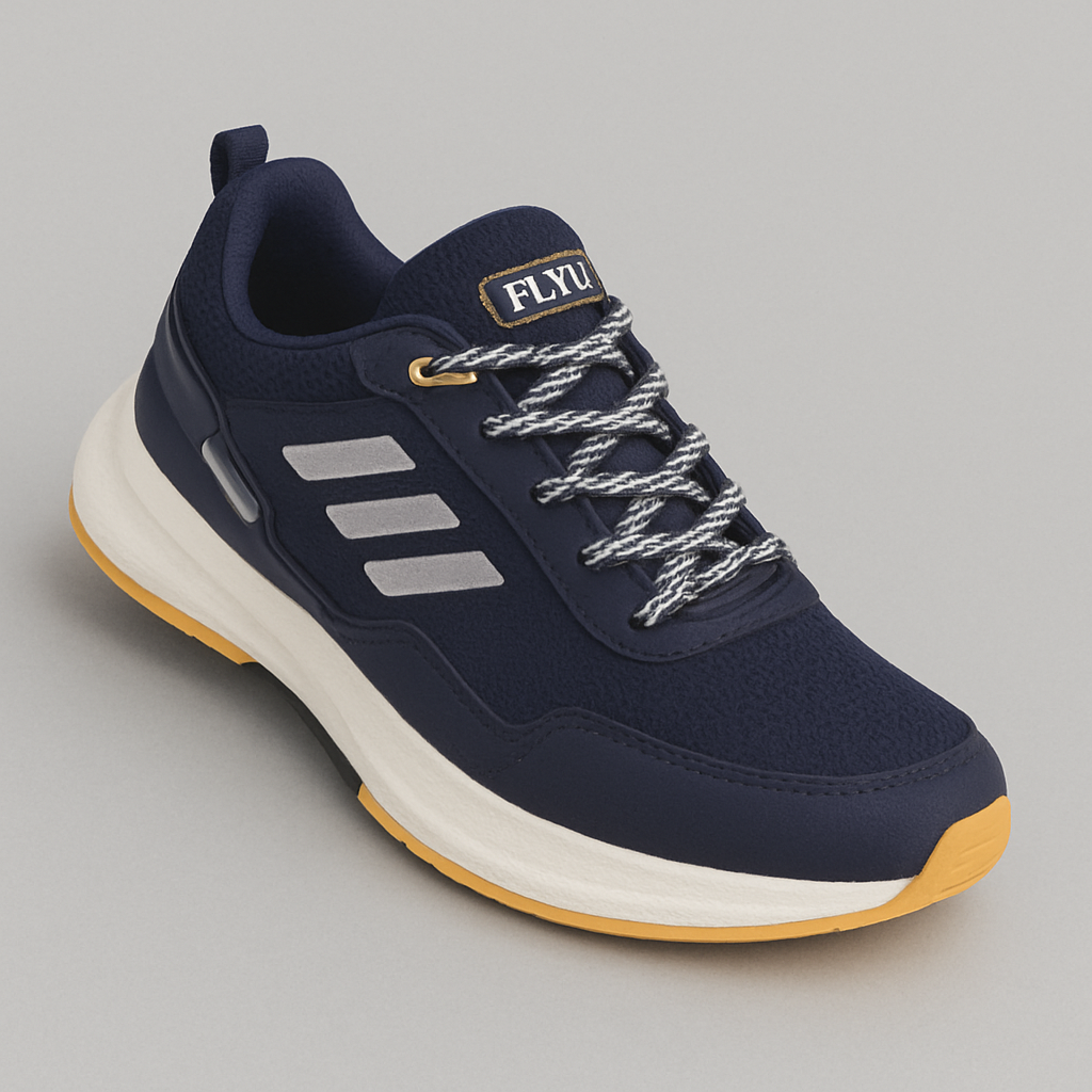 Yeh FLYO ke navy sports shoes stylish design ke saath comfort aur performance dono offer karte hain. Soft cushioned sole long walks aur running ke liye excellent support deta hai. Yellow outsole accents modern sporty look add karte hain, aur breathable upper daily wear ke liye perfect airflow ensure karta hai. Lightweight structure daily use, gym, travel aur outdoor activity ke liye ideal hai.