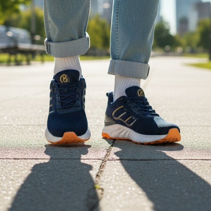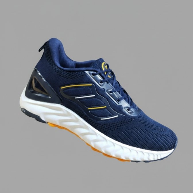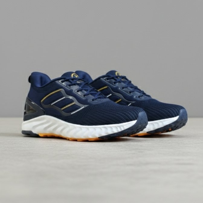 Yeh FLYO ke navy-yellow running shoes modern design, comfort aur stability ke perfect combination ke saath aate hain. Breathable knit upper airflow ensure karta hai jisse feet cool aur fresh rehte hain. Soft cushioned sole long walks aur running ke liye smooth aur supportive feel deta hai. Yellow high-grip outsole strong traction provide karta hai jo uneven ya slippery surfaces par bhi stability deta hai. Navy color with yellow accents inhe stylish aur sporty look deta hai.