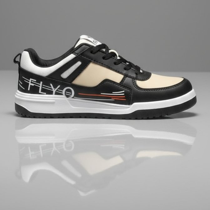 Step out in confidence with the Lakhani FLYO Men’s Sports Sneakers, designed for those who value both comfort and style. The elegant beige and black color combination with subtle red detailing gives it a modern, athletic edge. Built with a cushioned sole and durable outer material, these sneakers provide maximum comfort for long wear and everyday use. Perfect for workouts, casual outings, or daily wear — stay stylish with FLYO!