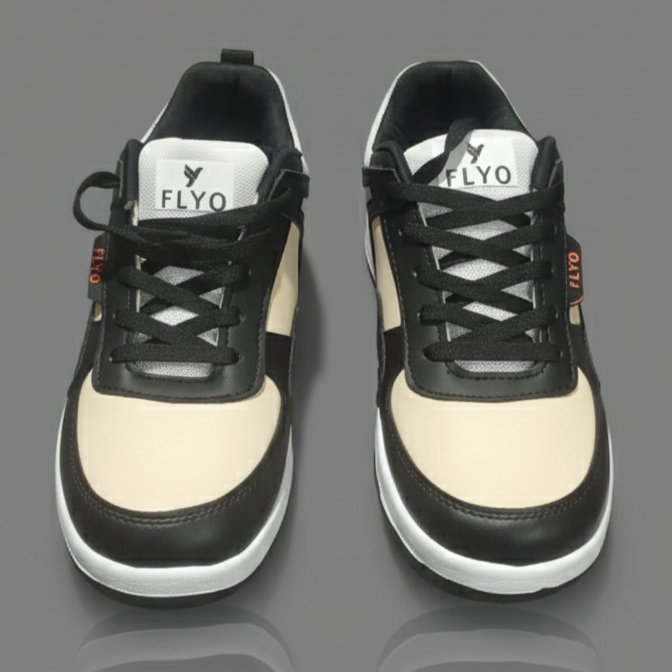 Lakhani FLYO Men’s Beige & Black Sports Sneakers – Style with ComfortLakhani FLYO Men’s Beige & Black Sports Sneakers – Style with Comfort