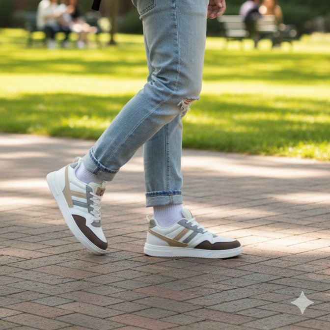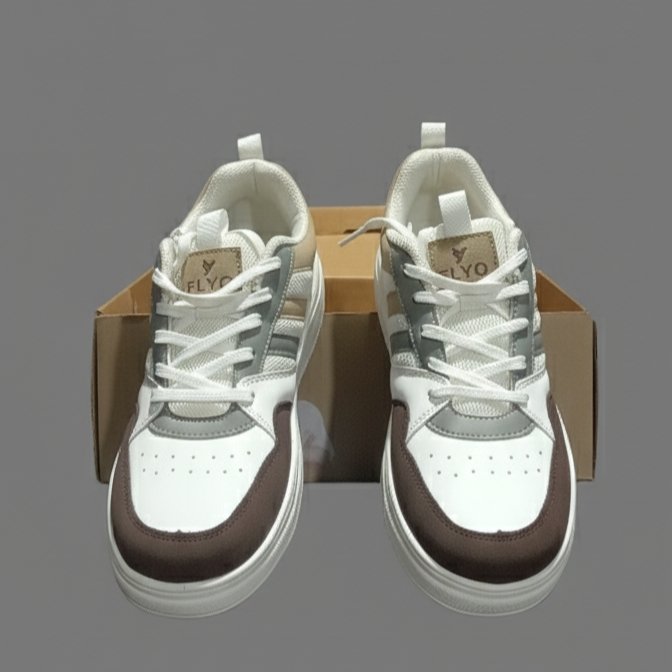 Add a stylish edge to your casual look with the **Lakhani Flyo Men’s Sneakers**. Designed for comfort and durability, these shoes feature a trendy color combination of **brown, beige, grey, and white**. The breathable mesh panels ensure all-day freshness, while the cushioned sole provides excellent comfort and grip. Perfect for daily wear, outings, or casual events, these sneakers combine fashion with function effortlessly.