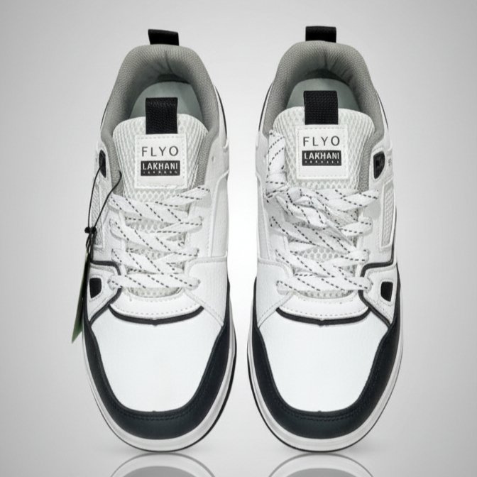 Step up your sneaker game with the Lakhani FLYO Men’s White & Black Premium Sneakers. Designed with a perfect balance of comfort and durability, these sneakers feature a sleek two-tone design that blends modern fashion with sporty aesthetics. The breathable upper mesh and cushioned sole provide exceptional comfort for long hours, while the sturdy outsole ensures superior grip and stability. Ideal for casual wear, gym sessions, or daily use — make every step stylish with FLYO!